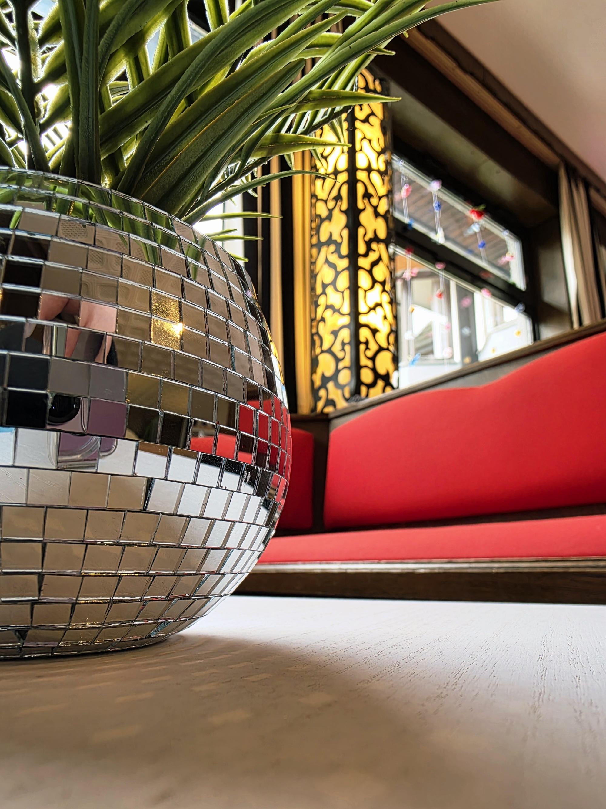 (Tanzfläche, JBL Partybox, Discobeleuchtung, Bühne, Stehtische)